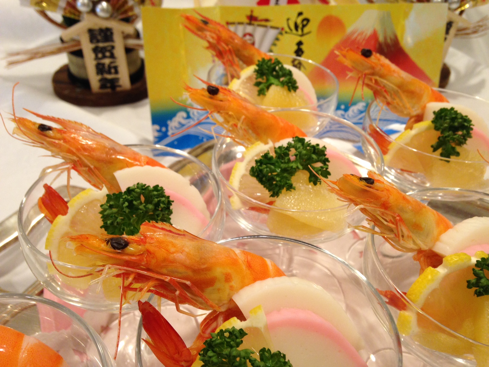 数の子、紅白カマボコ、煮エビが入った 『洋風シャンパングラス♪』